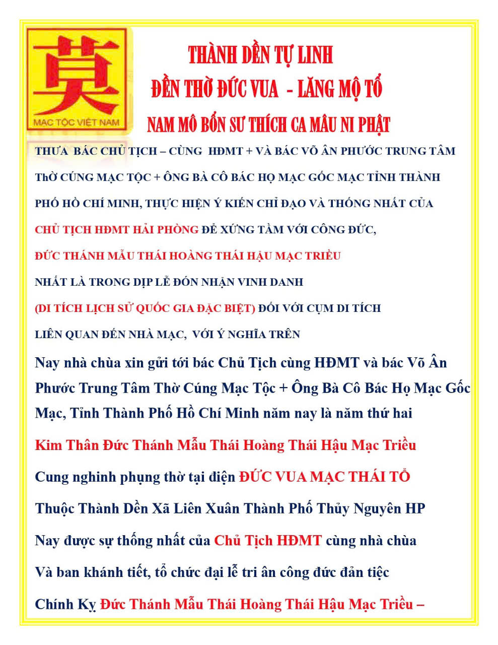 KÊU GỌI CÔNG ĐỨC “ĐẠI LỄ TRI ÂN TIÊN TỔ MẠC TỘC – CÔNG BỐ WEBSITE THÀNH DỀN TỰ LINH & TÔN VINH ĐỨC THÁNH MẪU MẠC TRIỀU”