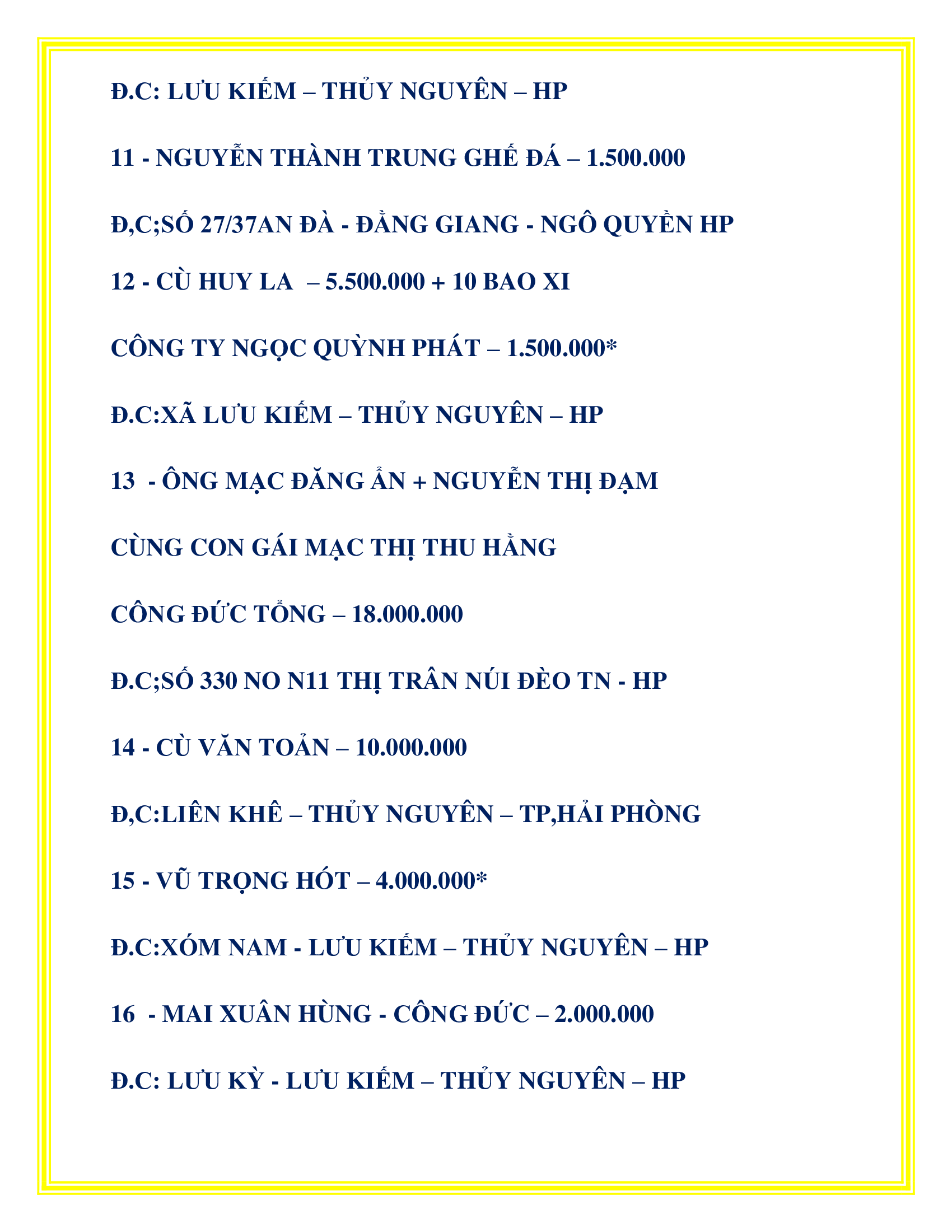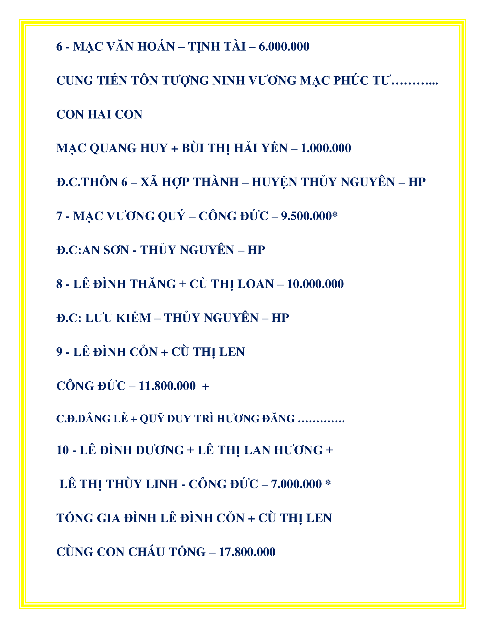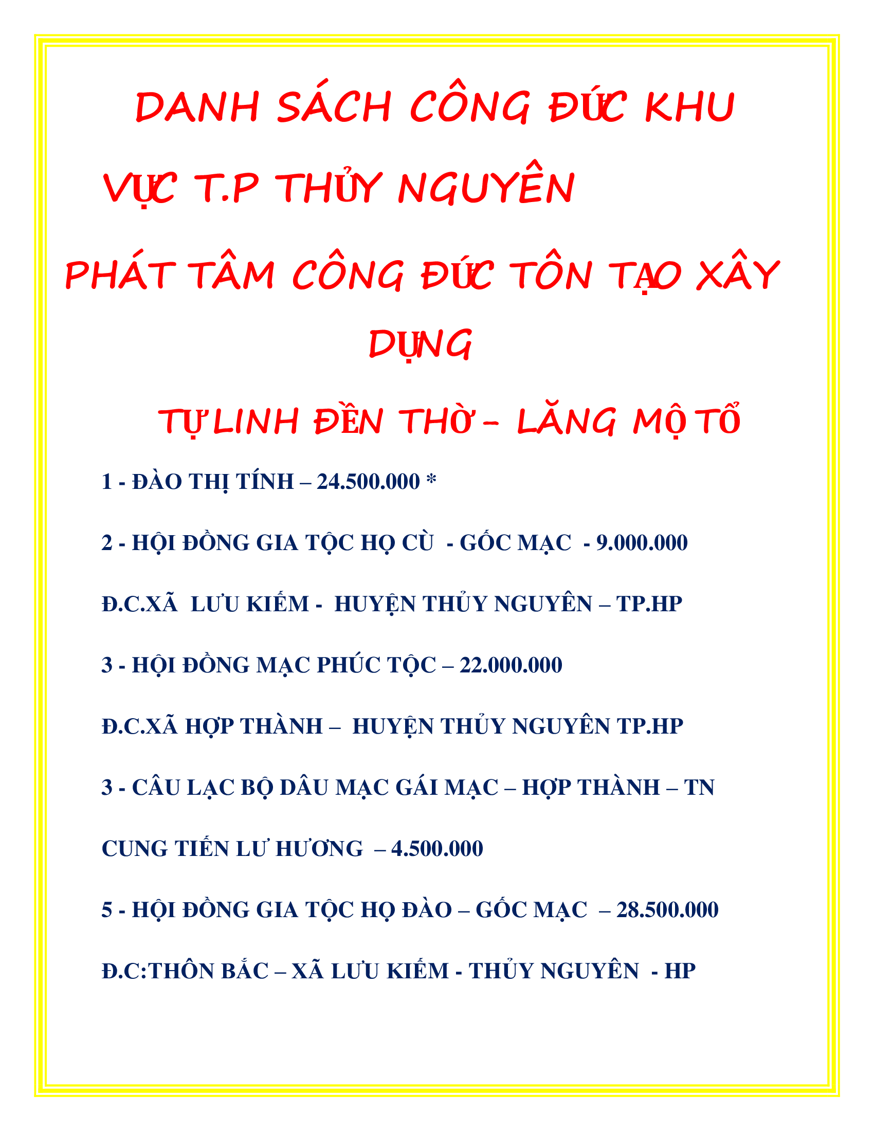DANH SÁCH CÔNG ĐỨC KHU VỰC TP. THỦY NGUYÊN PHÁT TÂM CÔNG ĐỨC TÔN TẠO XÂY DỰNG LĂNG MỘ TỔ TỪ 20/08/2022 – 10/04/2025