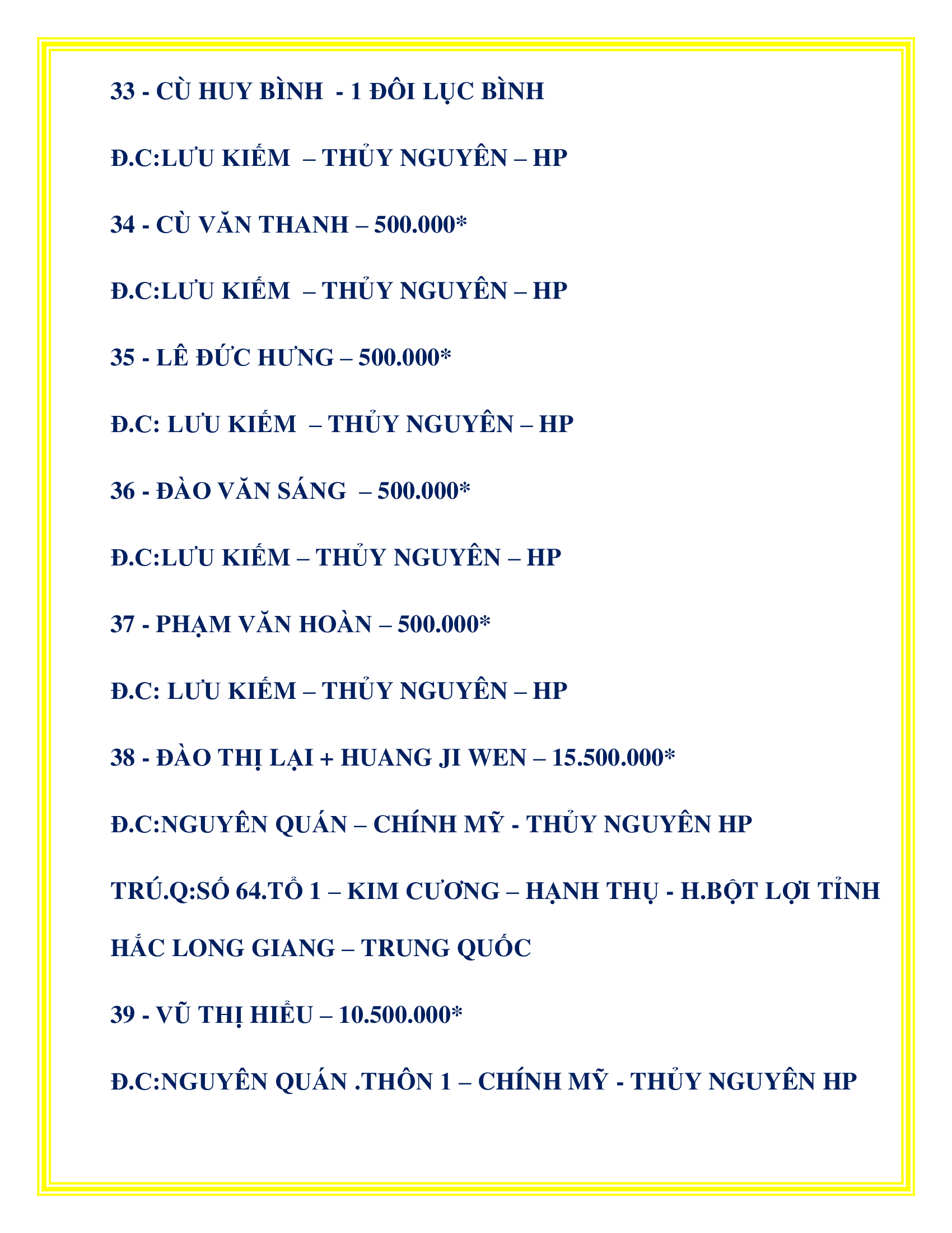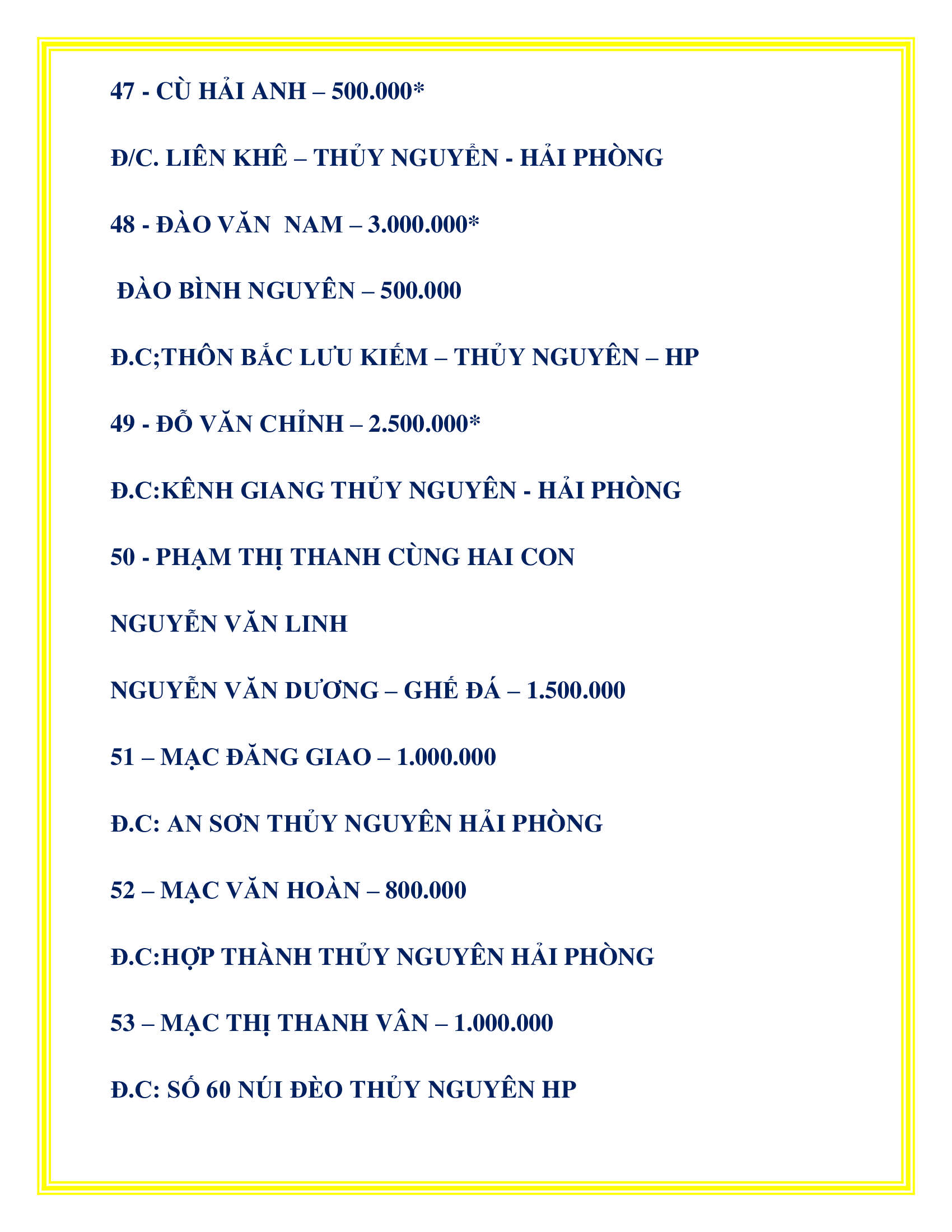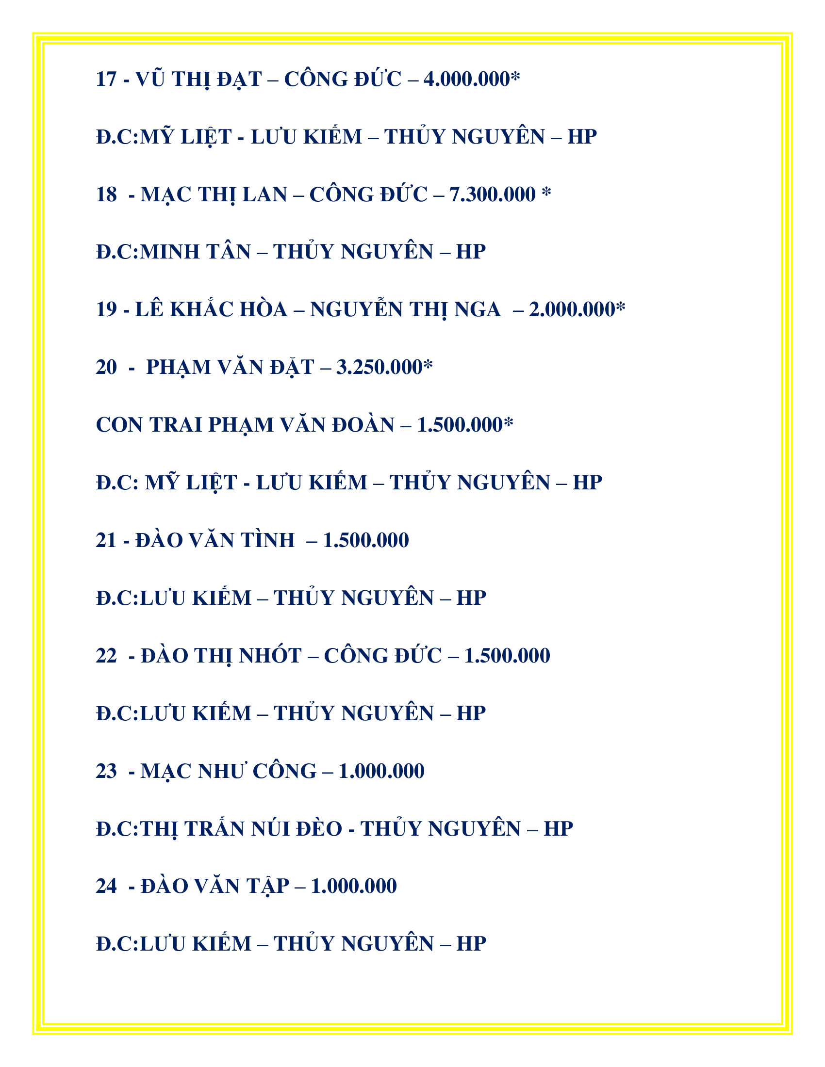 DANH SÁCH CÔNG ĐỨC KHU VỰC TP. THỦY NGUYÊN PHÁT TÂM CÔNG ĐỨC TÔN TẠO XÂY DỰNG LĂNG MỘ TỔ TỪ 20/08/2022 – 10/04/2025