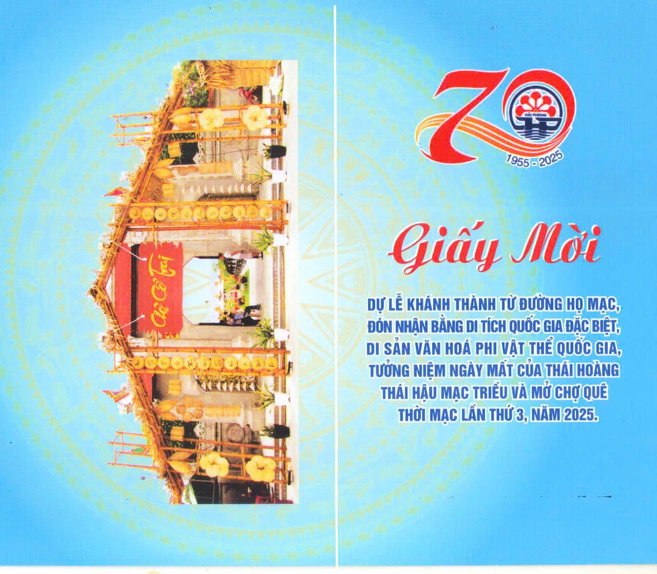 1. Lễ khánh thành Đền Thờ (Hoàn công dự án Tu bổ, tôn tạo và Mở rộng khuôn viên Từ đường họ); Đón nhận Bằng xếp hạng di tích Quốc gia đặc biệt, đón nhận di sản văn hoá phi vật thể quốc gia, khai mạc Chợ quê Thời Mạc lần thứ ba, năm 2025.